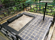 Мы цементируем подставку под памятник, выставляем гранитный цветник выкладываем всю территорию участка брусчаткой. Параллельно с этим устанавливаем простой столик.