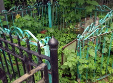 Металлическая ограда и кресты с бетонной плиткой
